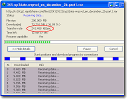 • Download limits. Progressive downloading with quotas feature. The feature is useful for connections that use some kind of fair access policy (or FAP) like Direcway, Direct PC, Hughes, etc.
